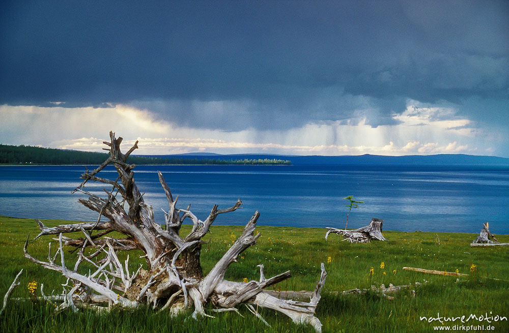 Regenwolken ?ber dem See, Ufer mit Holzgerippe ,