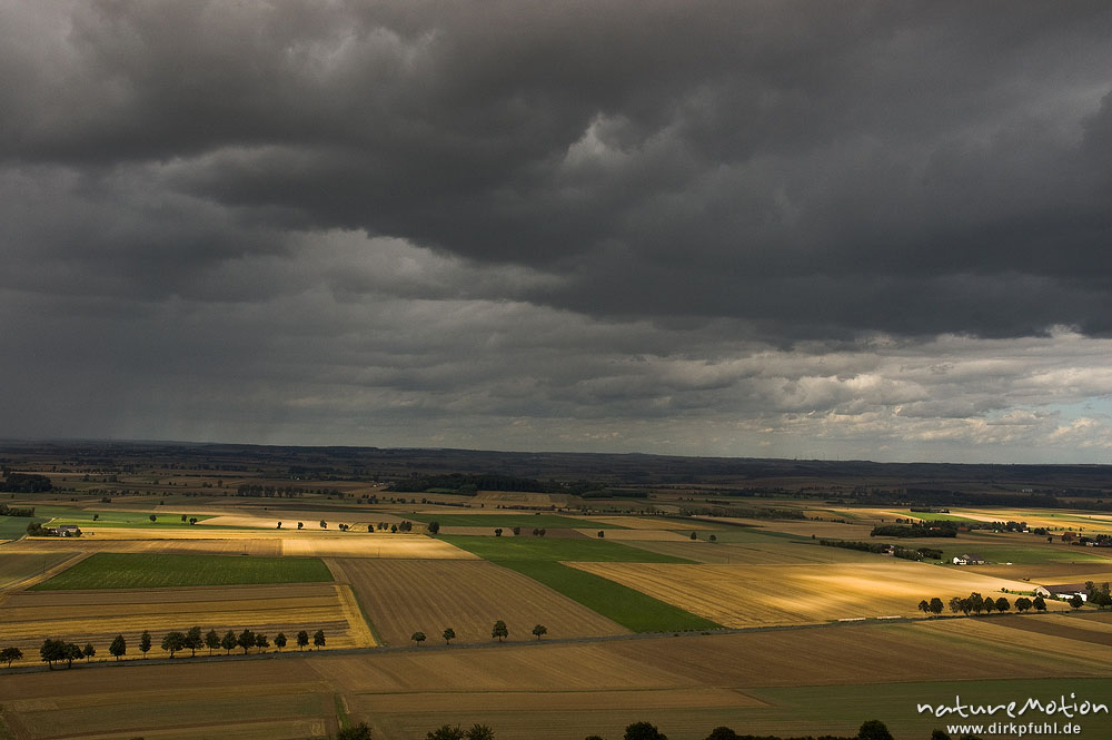 Regenwolken über einem Muster aus Getreidefelder, Wolkenschatten Warburg, Deutschland