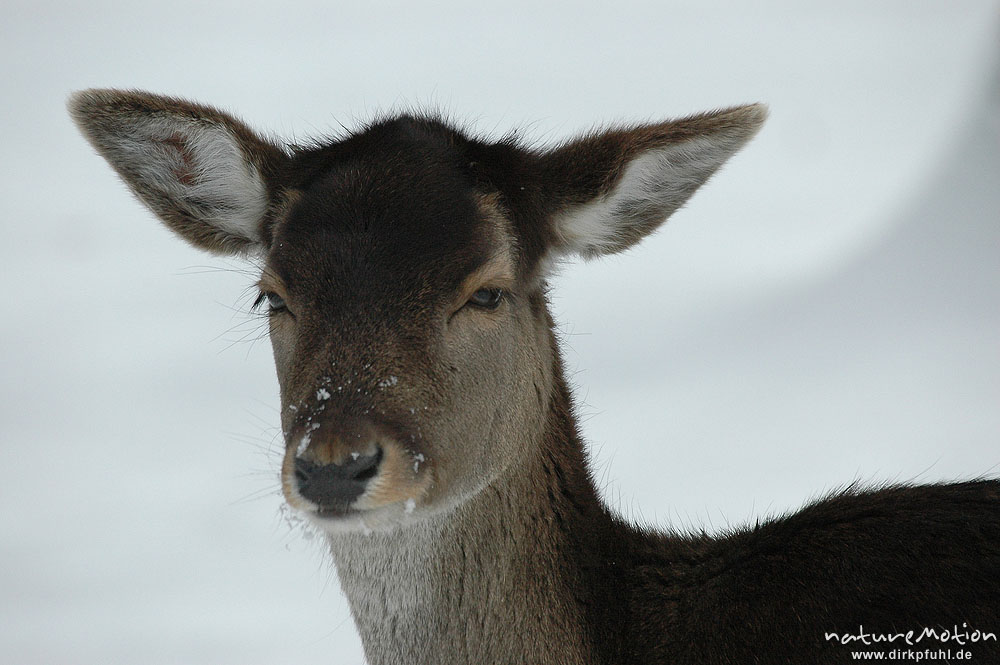Reh, Capreolus capreolus, Cervidae, Gesicht mit Eiskristallen, Kehr Göttingen, Deutschland