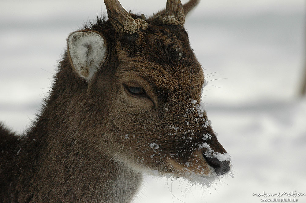 Reh, Capreolus capreolus, Cervidae, Gesicht mit Eiskristallen, Kehr Göttingen, Deutschland