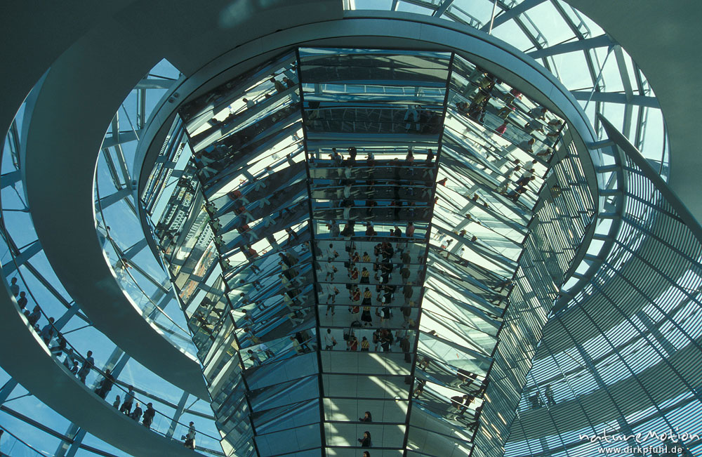 Reichstagskuppel von Innen, Spiegel, Treppenspirale, Berlin, Deutschland