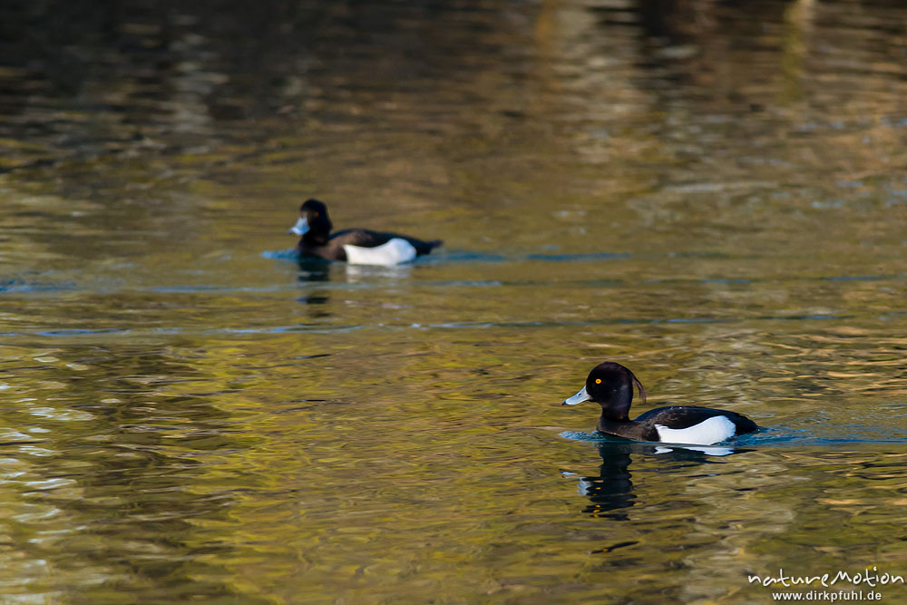 Reiherente, Aythya fuligula, Entenvögel (Anatidae), Männchen im Prachtkleid, Levinscher Park, A nature document - not arranged nor manipulated, Göttingen, Deutschland