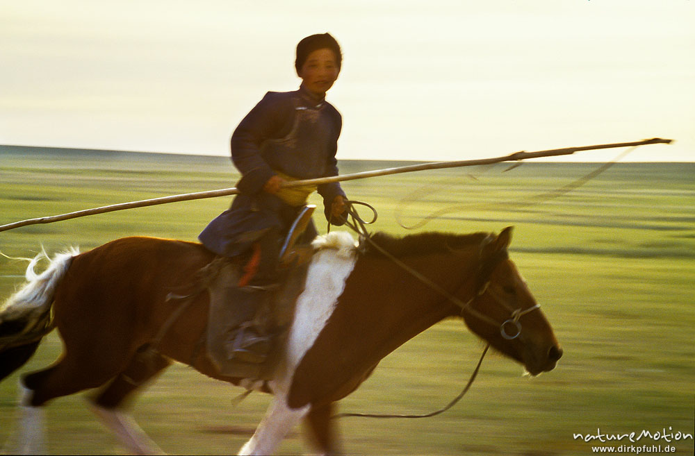 reitender Junge mit Urga, Holzstab mit Schlinge W?ste Gobi, Mongolei