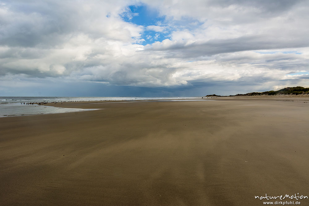 Rippel und Sandstrukturen, Regenwolken, Nordstrand, Borkum, Deutschland