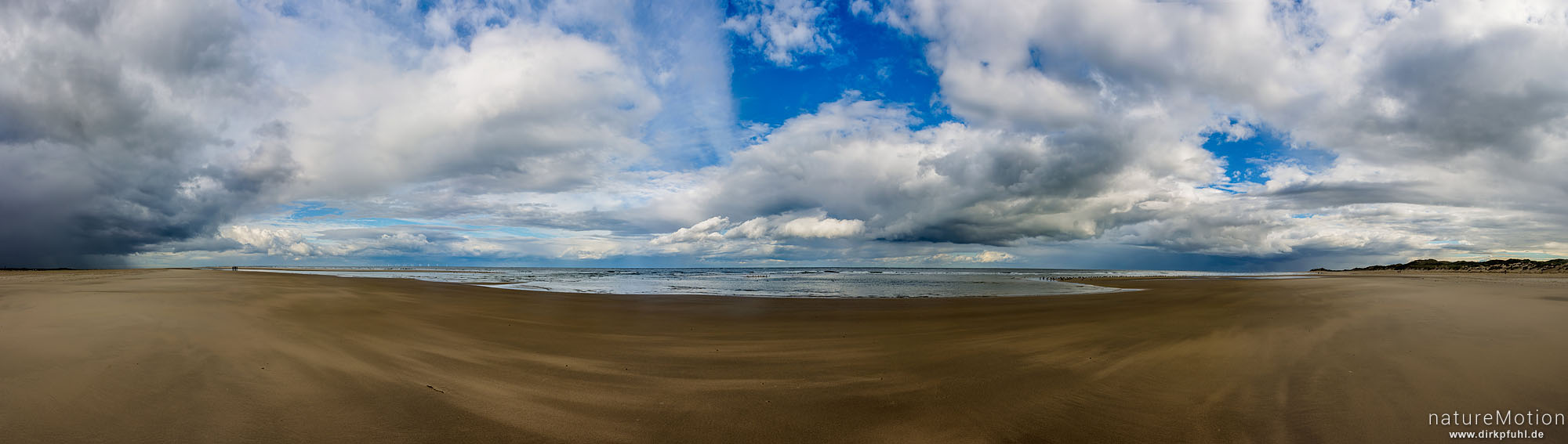 Rippel und Sandstrukturen, Regenwolken, Nordstrand, Borkum, Deutschland