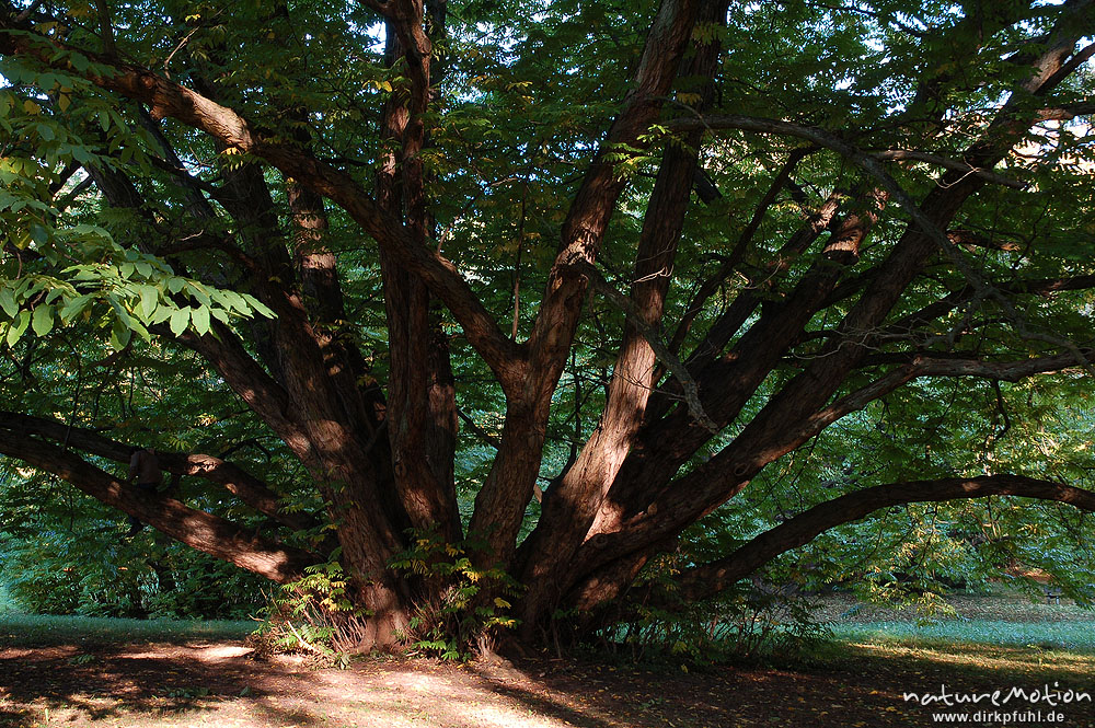 Robinie, Robinia pseudoacacia, Fabaceae, weit verzweigter, ausladender Stamm, Schillerwiesen, Göttingen, Göttingen, Deutschland