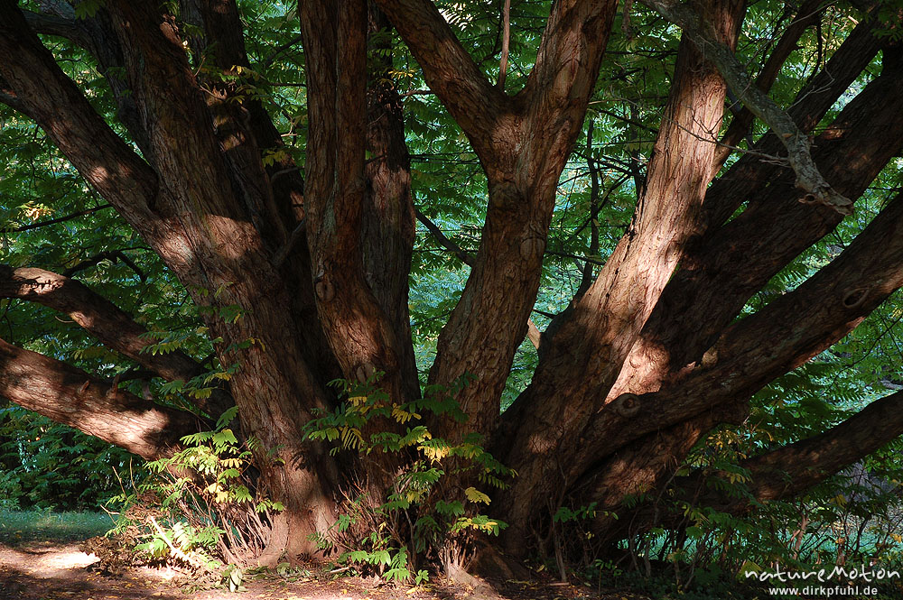 Robinie, Robinia pseudoacacia, Fabaceae, weit verzweigter, ausladender Stamm, Schillerwiesen, Göttingen, Göttingen, Deutschland