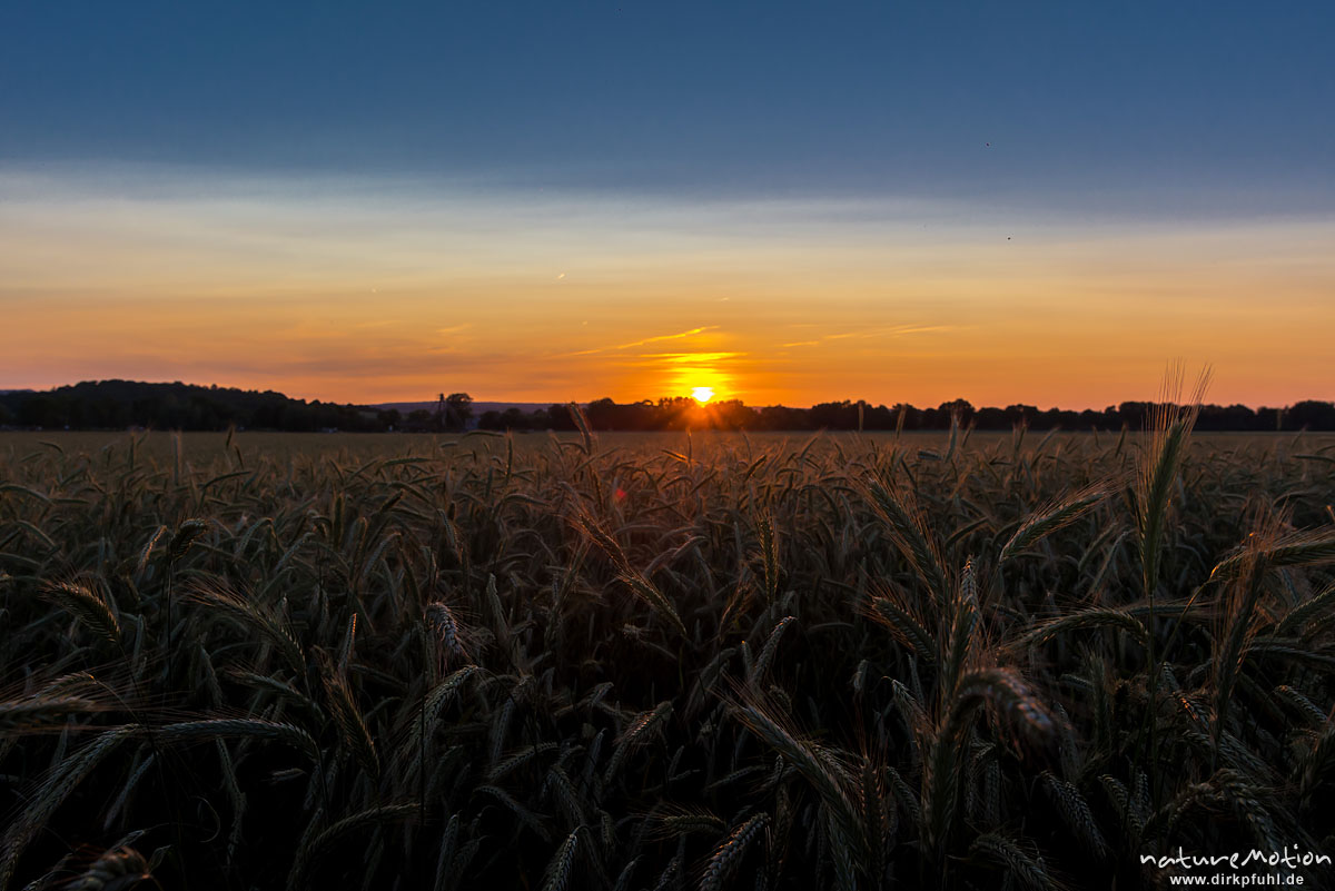 Roggen, Secale cereale, Süßgräser (Poaceae), fast reife Ähren im Sonnenuntergang, Leineauen, Göttingen, Deutschland