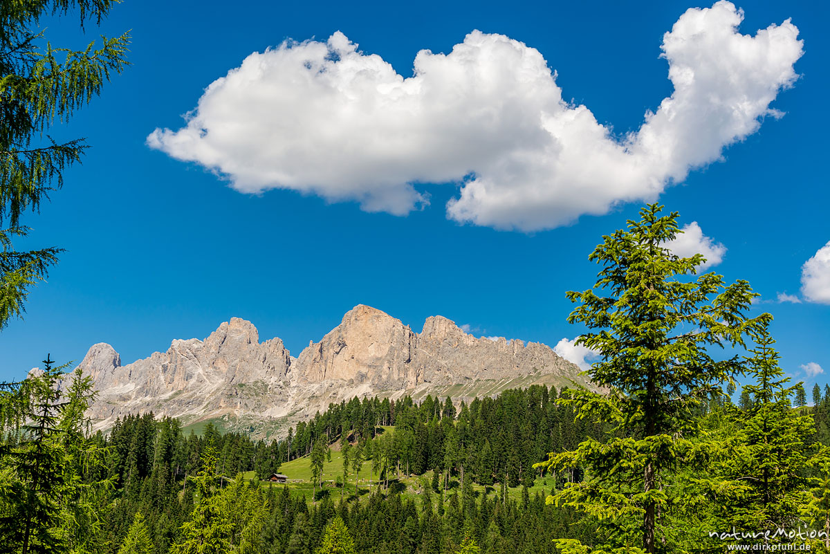 Rosengarten, Rotwand, Blick vom Labyrinthsteig am Latemar, Karersee, Südtirol, Italien