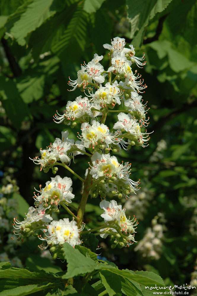 Rosskastanie, Aesculus hippocastanum, Blütenstand und Blätter, Göttingen, Deutschland