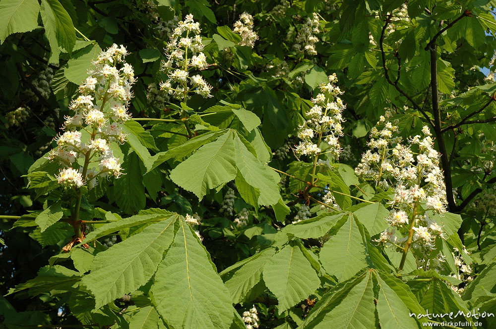Rosskastanie, Aesculus hippocastanum, Blütenstand und Blätter Göttingen, Deutschland