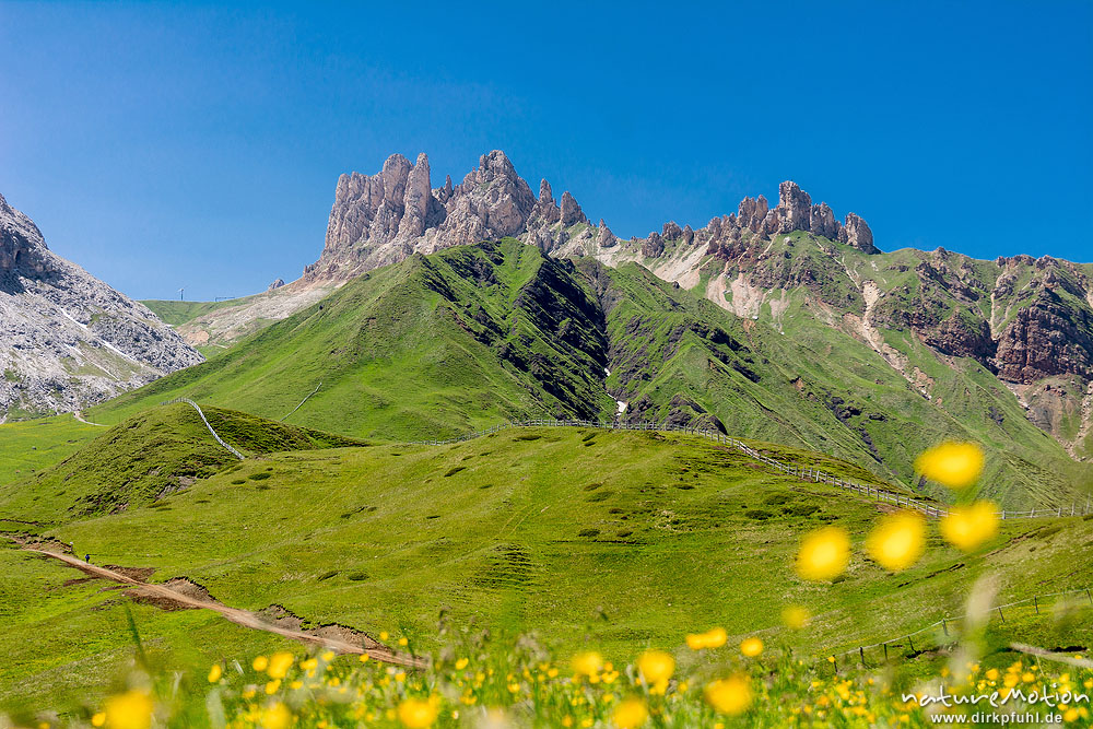 Rosszähne, Weg zwischen Plattkofelhütte und Tierser Alpl Hütte, Seiseralm (Südtirol), Italien