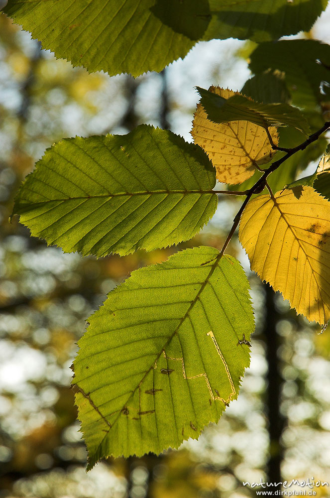 Rot-Buche, Fagus sylvatica, Fagaceae, Buchenblatt mit beginnender Herbstfärbung, Rotbuche, Göttinger Wald, Göttingen, Deutschland