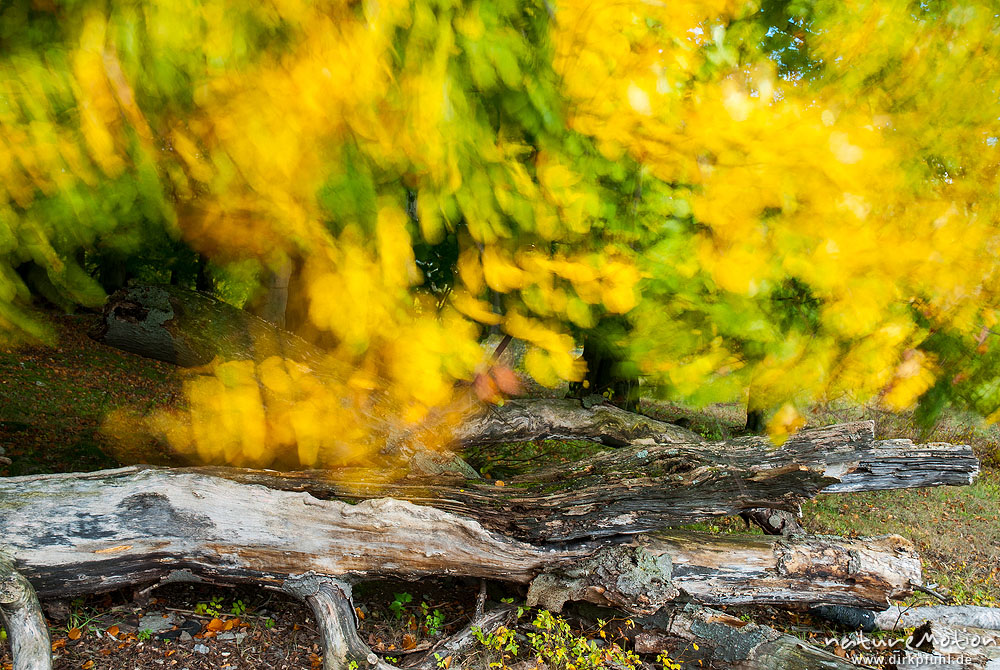 Rot-Buche, Fagus sylvatica, Fagaceae, Laub mit Herbstfärbung, bewegt isch im Wind, Bewegungsunschärfe, Kerstlingeröder Feld, Göttingen, Deutschland