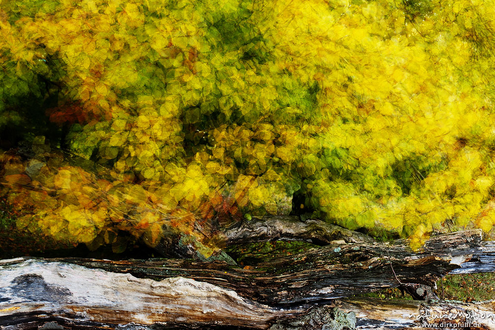 Rot-Buche, Fagus sylvatica, Fagaceae, Laub mit Herbstfärbung, bewegt sich im Wind, Mehrfachbelichtung, Kerstlingeröder Feld, Göttingen, Deutschland
