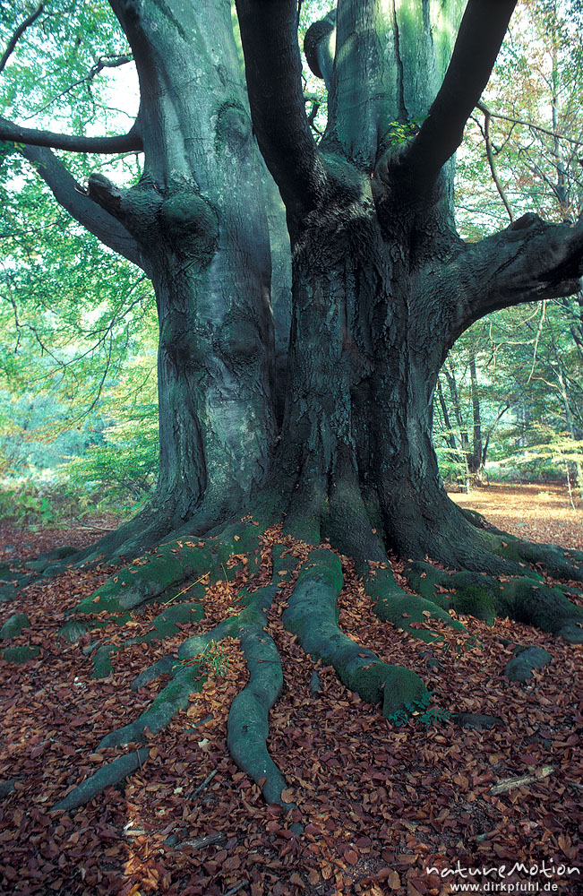 Rot-Buche, Fagus sylvatica, Fagaceae, Rheinhardswald, Sababurg, sehr kraftvoller Baum, tief verwurzelt (ehemals 103,06), Urwald Sababurg, Deutschland