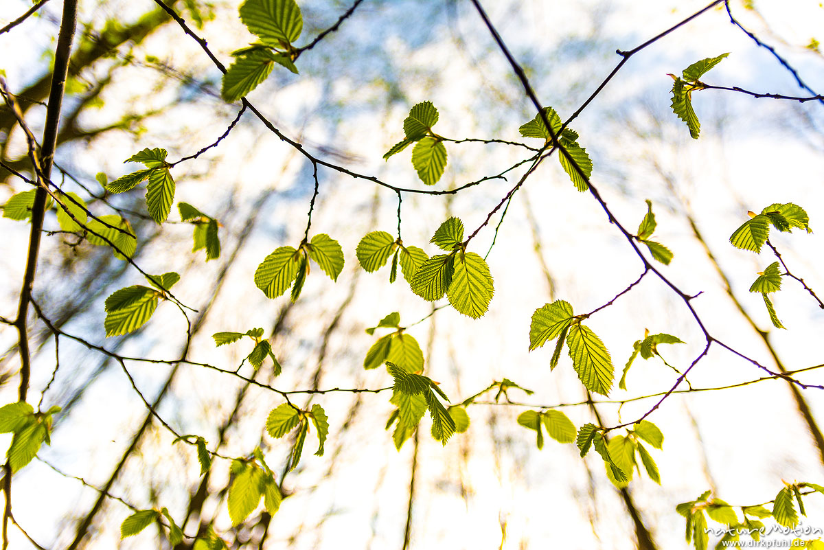 Rot-Buche, Fagus sylvatica, Fagaceae, Zweige mit frisch ausgetriebenem Laub, Trift, Göttingen, Deutschland