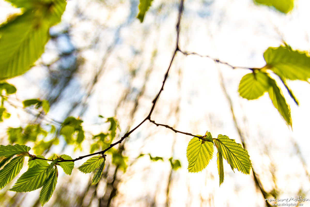 Rot-Buche, Fagus sylvatica, Fagaceae, Zweige mit frisch ausgetriebenem Laub, Trift, Göttingen, Deutschland