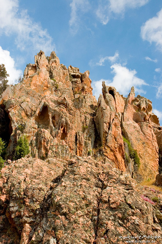 rote Felsen der Calanche, bizarr erodiert, Wolken Korsika, Frankreich