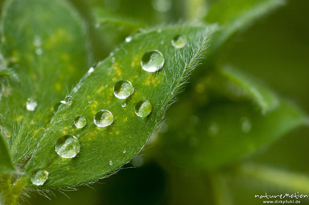Roter Wundklee, Anthyllis vulneraria, Schmetterlingsblütler (Fabaceae), Blätter mit Wassertropfen, Capo Pertusato, Korsika, Frankreich