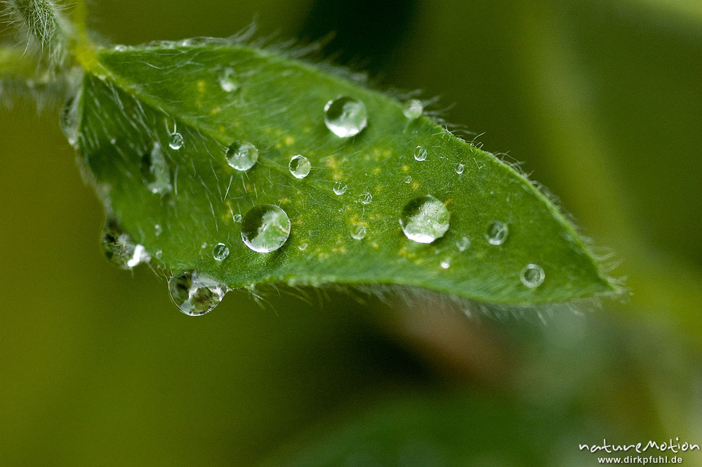 Roter Wundklee, Anthyllis vulneraria, Schmetterlingsblütler (Fabaceae), Blätter mit Wassertropfen, Capo Pertusato, Korsika, Frankreich