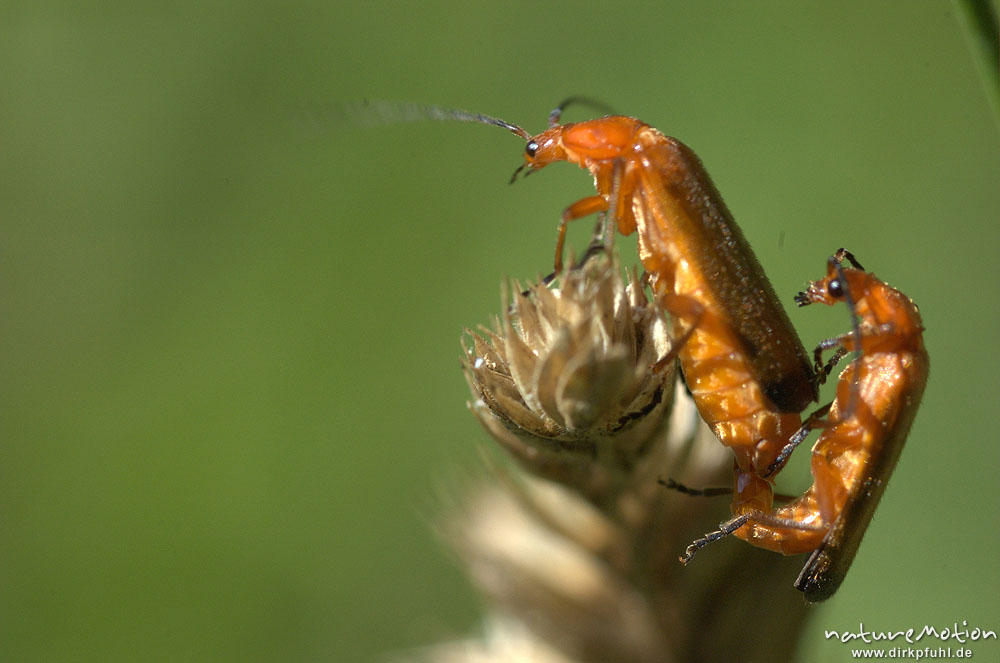 Rotgelber Weichkäfer, Rhagonycha spec., Cantharidae, Paarung, Gartetal, Deutschland