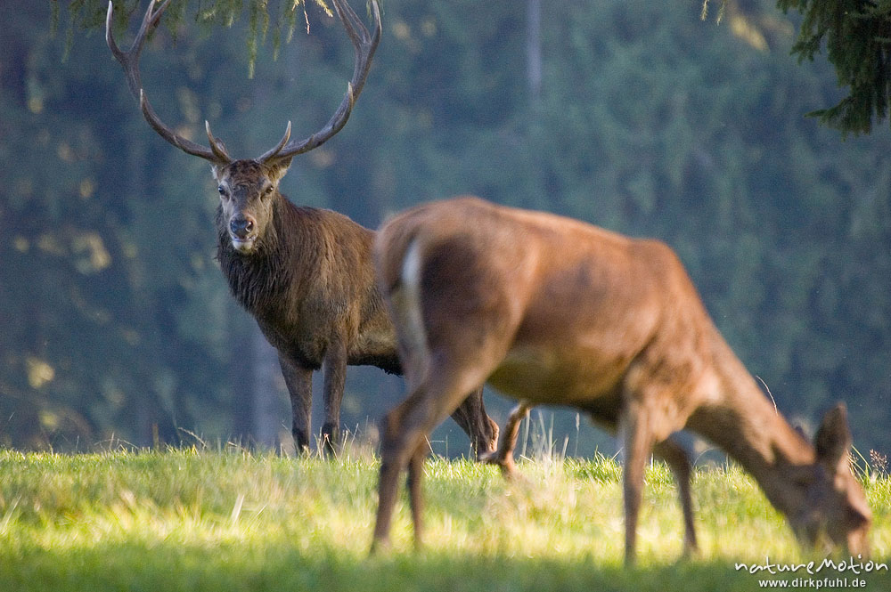 Rothirsch, Cervus elaphus, Cervidae, brünftiges Männchen, Wildpark Neuhaus, Neuhaus, Deutschland