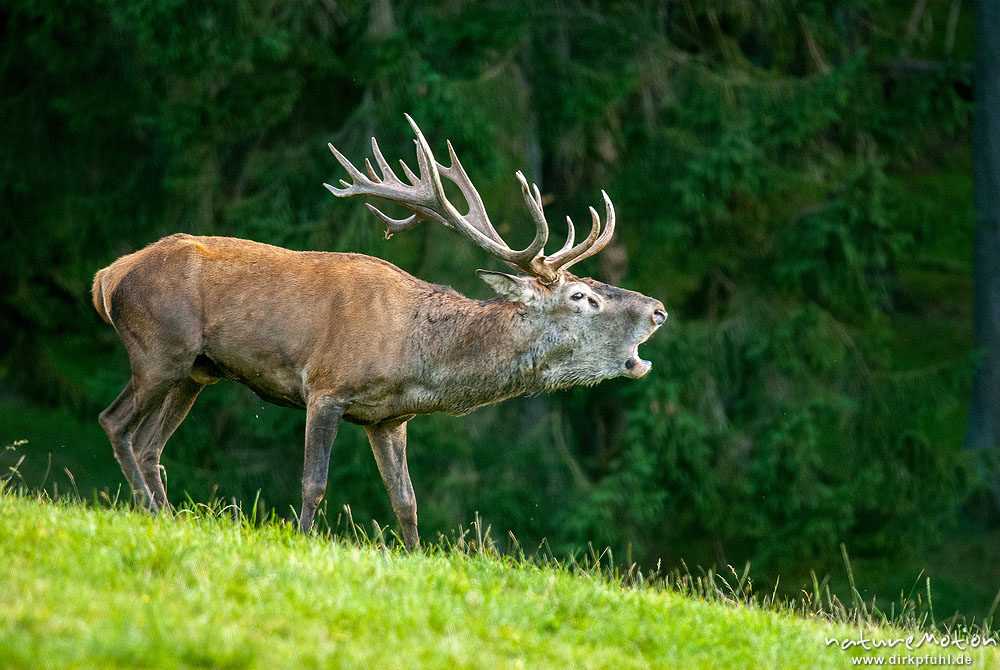 Rothirsch, Cervus elaphus, Cervidae, Männchen bei der Brunft, röhrt, Tierpark Neuhaus, captive, Neuhaus, Deutschland