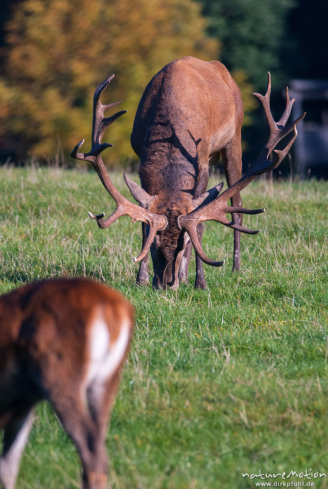 Rothirsch, Cervus elaphus, Cervidae, Männchen mit Weibchen, Tierpark Neuhaus, captive, Neuhaus, Deutschland
