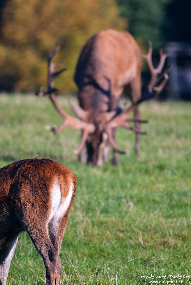 Rothirsch, Cervus elaphus, Cervidae, Männchen mit Weibchen, Tierpark Neuhaus, captive, Neuhaus, Deutschland