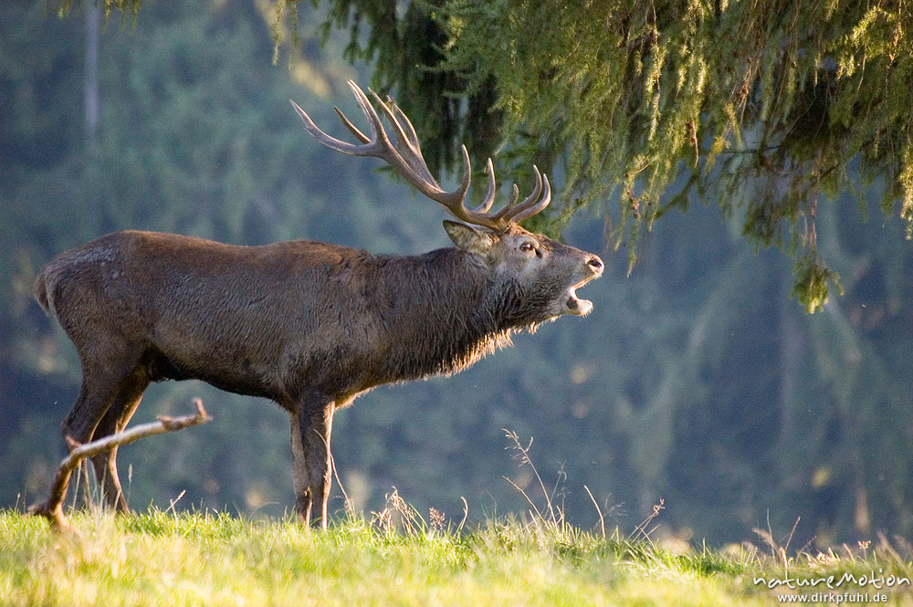 Rothirsch, Cervus elaphus, Cervidae, röhrend, brünftiges Männchen, Wildpark Neuhaus, Neuhaus, Deutschland