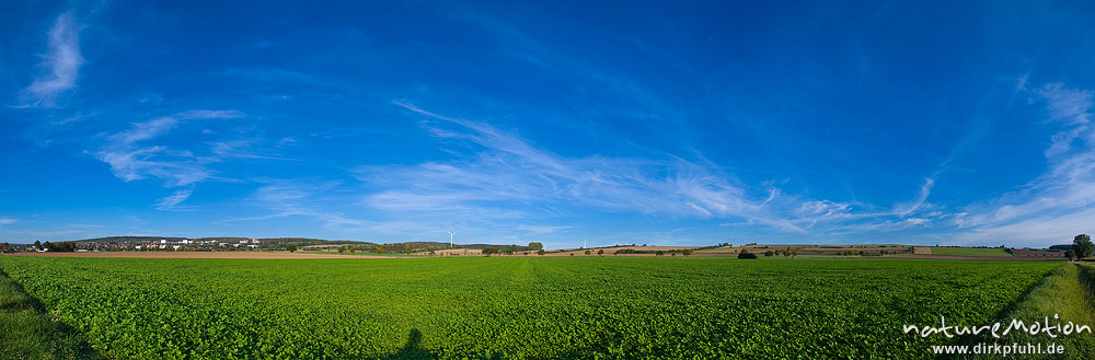 Rübenfeld und Panorama Leinetalauen südlich Geismar, Blick auf Göttinger Wald, Westerberg und Diemardener Warte, Göttingen, Deutschland