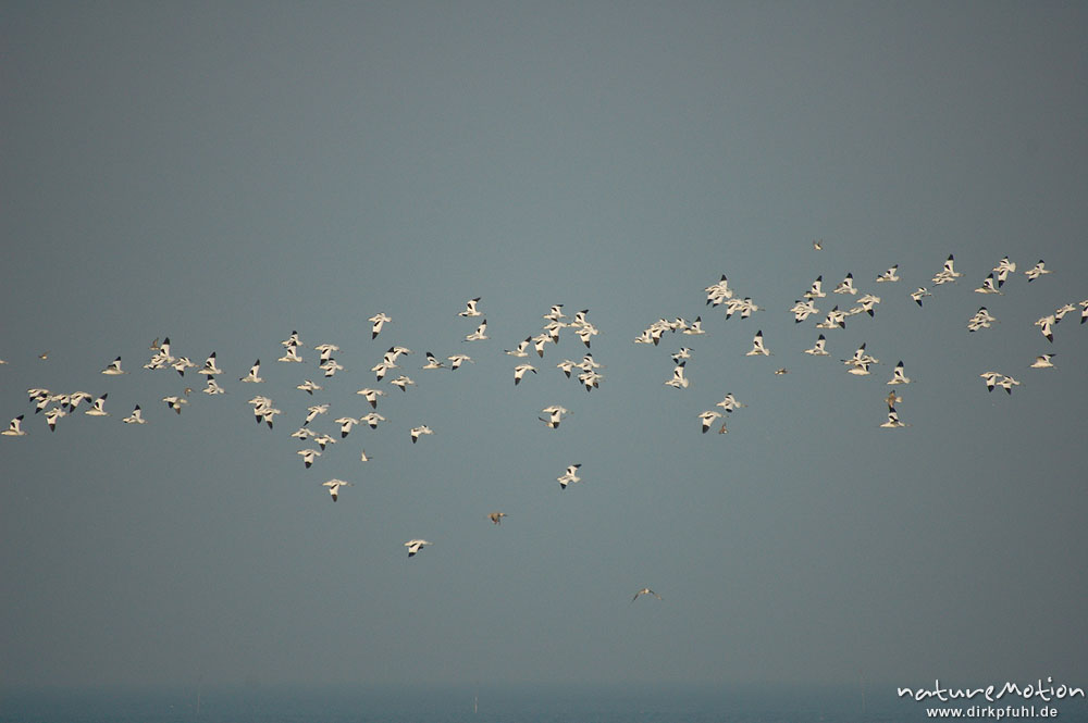 Säbelschnäbler, Recurvirostra avosetta, Recurvirostridae, Vogelschwarm, abendliche Rast, Amrum Amrum, Deutschland