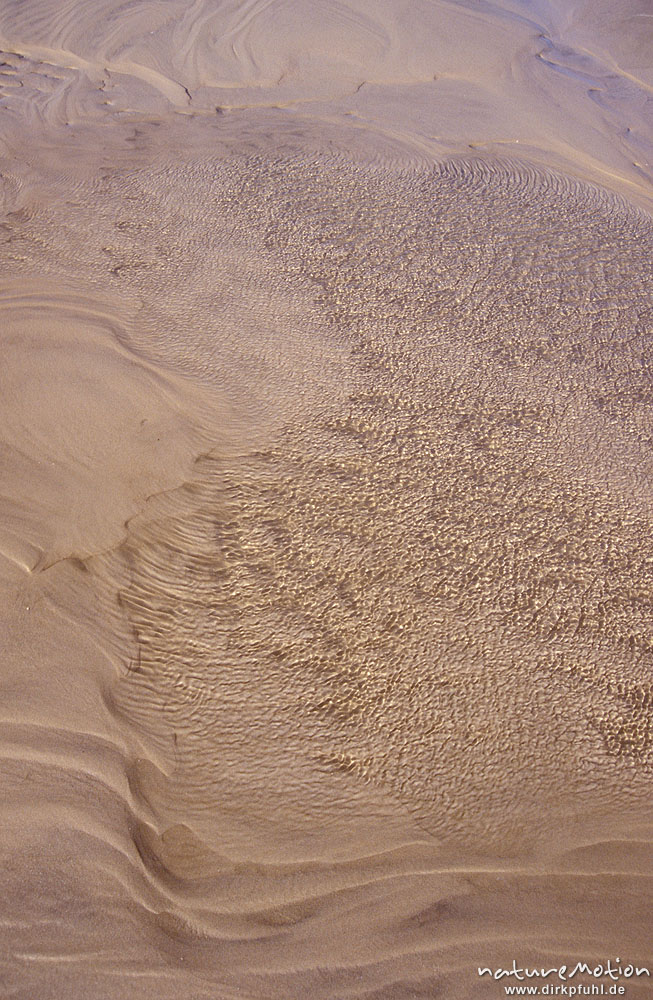 Sandmuster, ablaufendes Wasser am Rand eines Priels, Spiekeroog, Deutschland