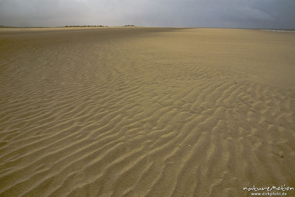 Sandrippel, Regenwolken, Strand und Dünen, Amrum, Deutschland