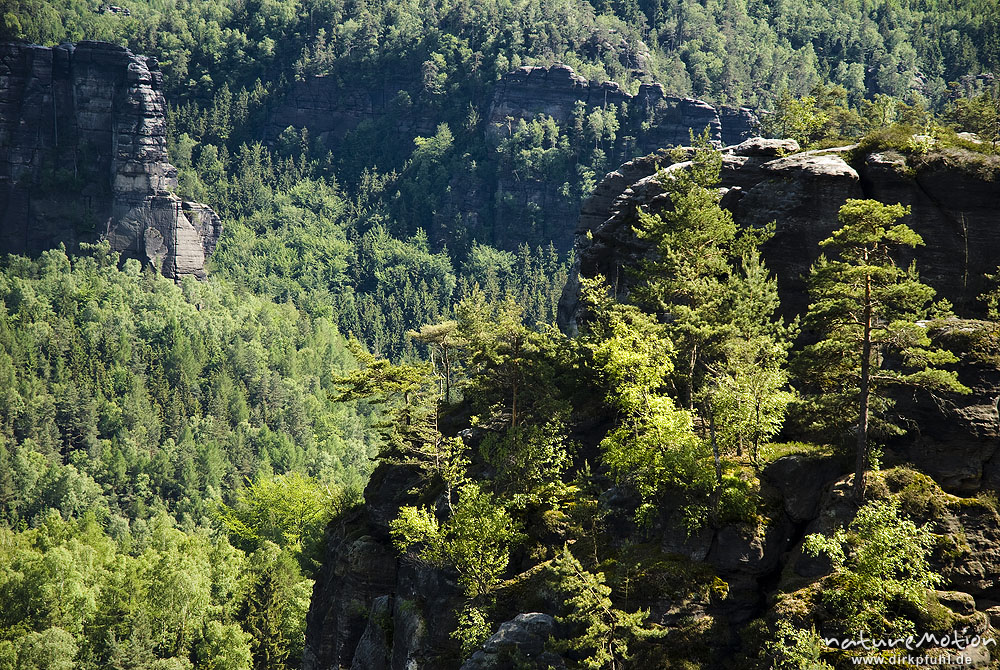 Sandsteinfelsen mit Kiefern und Birken, Aussicht vom Kleinen Winterberg Bad Schandau, Deutschland