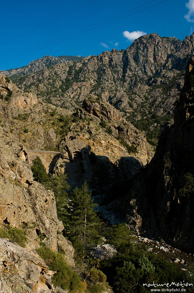 Scala die Santa Regina, zerklüftetes Bachtal, Wald und Berge Korsika, Frankreich
