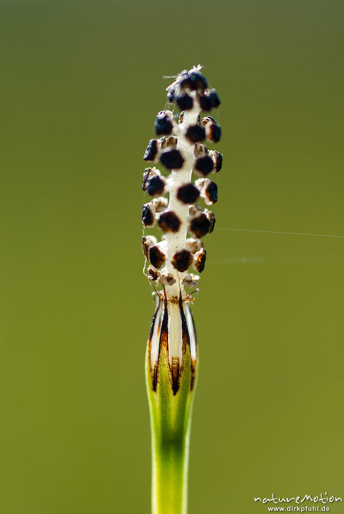 Schachtelhalm, Sporophyllstand an Sprossspitze, Feuchtwiese, Staffelsee, Deutschland