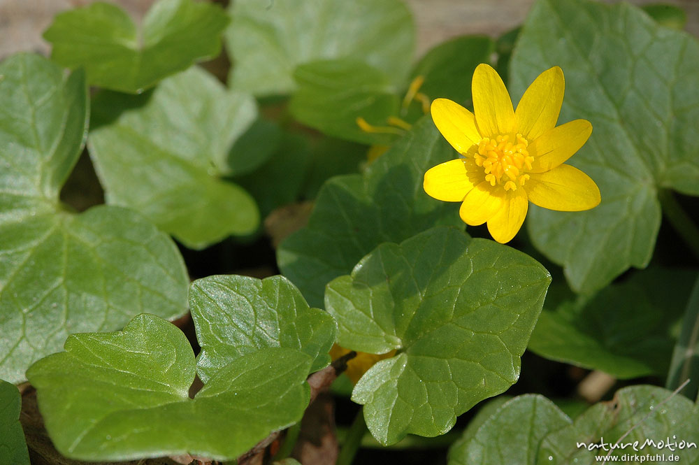 Scharbockskraut, Ranunculus vicaria, Blüte und Blätter, Witzenhausen, Deutschland