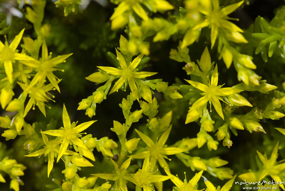 Scharfer Mauerpfeffer, Fetthenne, Sedum acre, Crassulaceae, (? Artbestimmung unsicher), Blüten Bohinjer See Wocheiner See, Slowenien