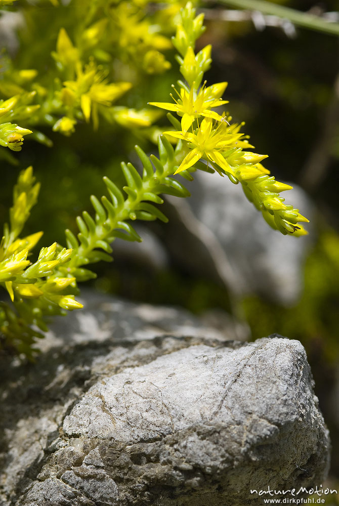 Scharfer Mauerpfeffer, Fetthenne, Sedum acre, Crassulaceae, (? Artbestimmung unsicher) Bohinjer See Wocheiner See, Slowenien