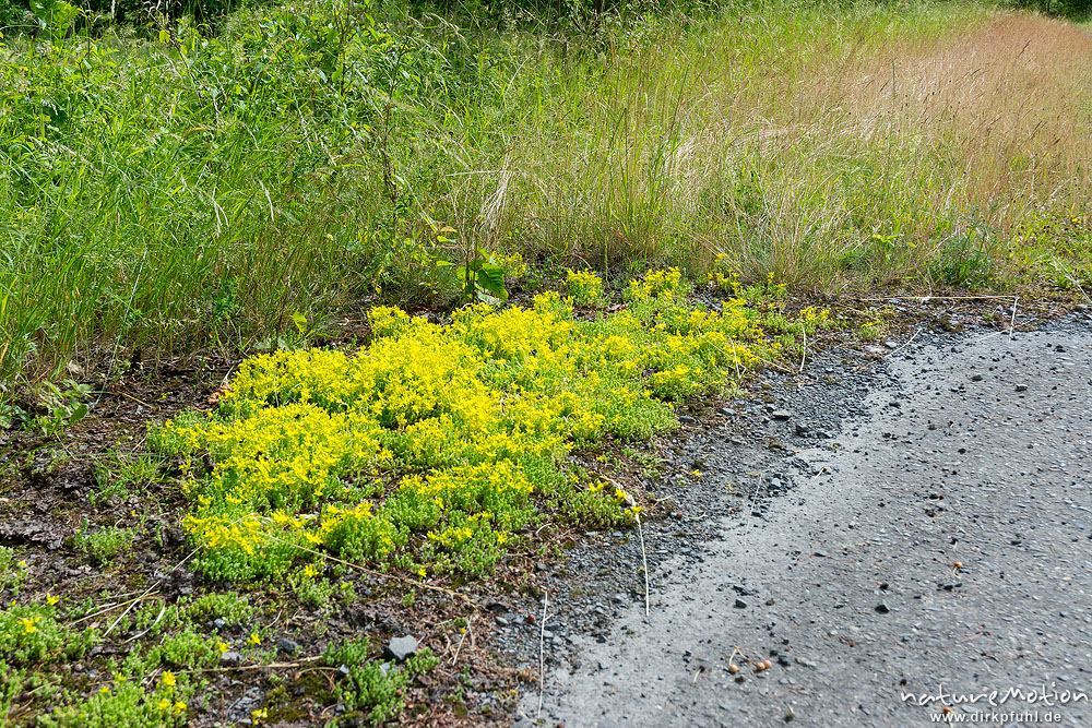 Scharfer Mauerpfeffer, Fetthenne, Sedum acre, Dickblattgewächse (Crassulaceae), blühende Pflanzen, Rasen am Wegrand, Kerstlingeröder Feld, Göttingen, Deutschland