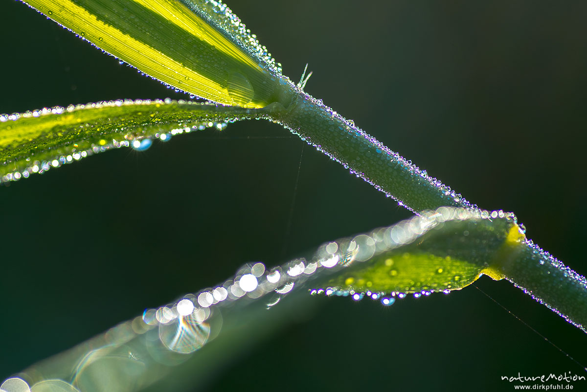 Schilf, Phragmites australis, Poaceae, Blätter, mit Tautropfen, Kiessee, Göttingen, Deutschland