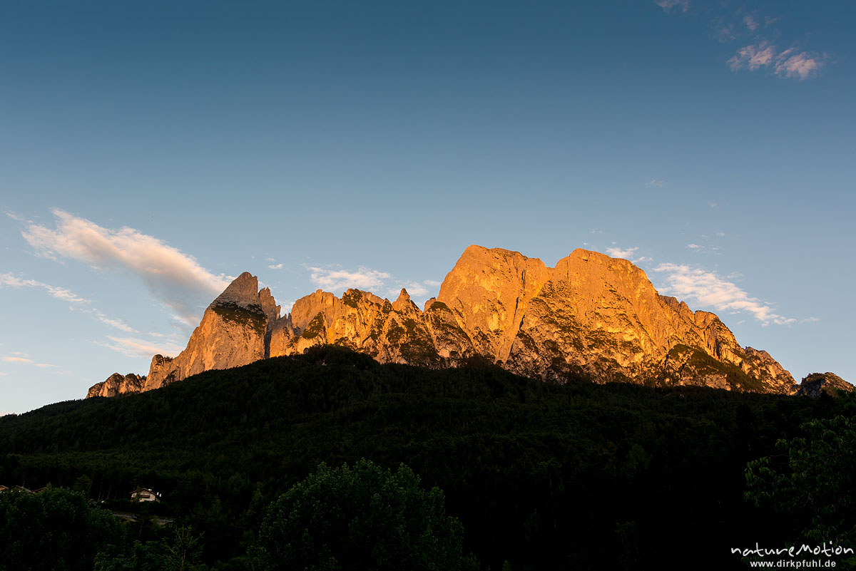 Schlern im Abendlicht, Alpenglühen, Völs am Schlern, Südtirol, Italien