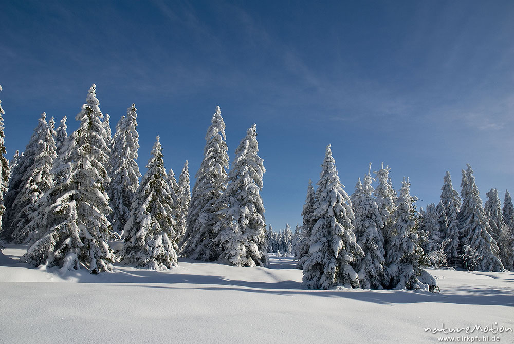 schneebedeckte Fichten, Sonnenberg, Harz, Deutschland