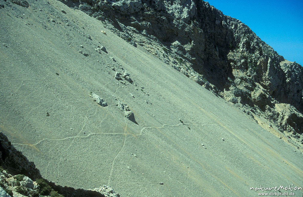 Schuttfeld mit Pfaden, Hang des Gingolos, Kreta, Griechenland