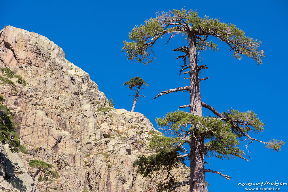 Schwarz-Kiefer, Laricio-Kiefer, Pinus nigra, Pinaceae, Bäume und Wald auf dem Weg durchs Tal des Golo zur Hütte Ciottulo di i Mori, Korsika, Frankreich