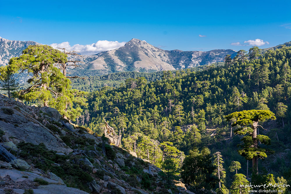 Schwarz-Kiefer, Laricio-Kiefer, Pinus nigra, Pinaceae, Bäume und Wald auf dem Weg durchs Tal des Golo zur Hütte Ciottulo di i Mori, Korsika, Frankreich