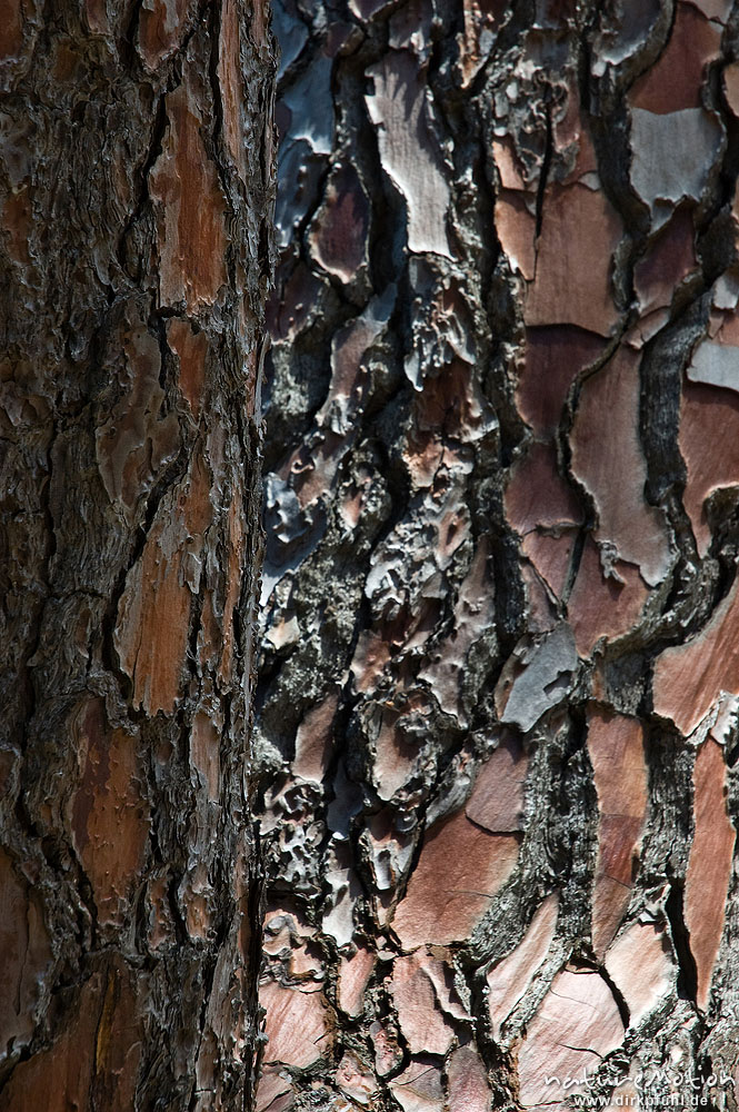 Schwarz-Kiefer, Laricio-Kiefer, Pinus nigra, Pinaceae, Borke, Tal des Cavo Korsika, Frankreich