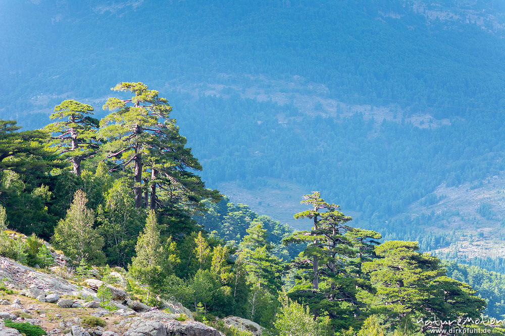 Schwarz-Kiefer, Laricio-Kiefer, Pinus nigra, Pinaceae, Wald Valdu Niellu, Wanderung Forsthaus Poppaghia zum Lac de Nino, Korsika, Frankreich
